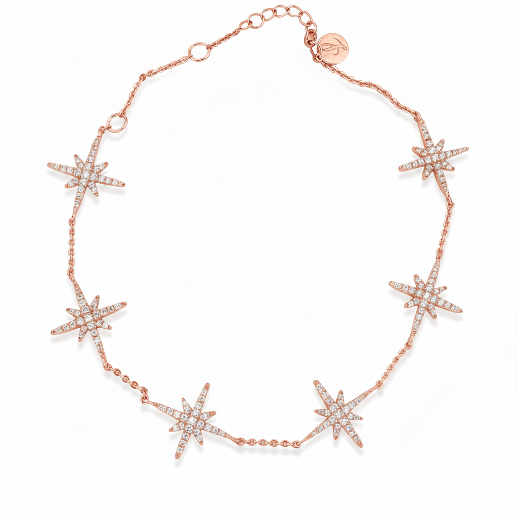 Glow your wrist game with shinny stars ! Available in silver and gold plated with zircons. For gold 18k options, get in touch with us,